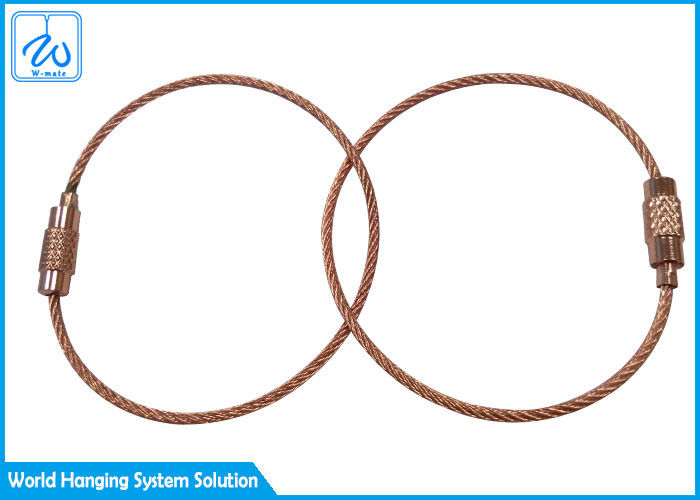These are also known as a cable key ring with screw lock. Our braided wire with screw lock is made of stainless steel with a secure screw lock at either end.