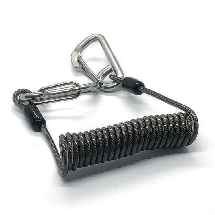 Extension Spring Safety Cable Retractable Fishing Lanyard are an intermediate device that go between your attachment point (tethered tool) and your anchor point (holster, harness, belt, bag etc.).